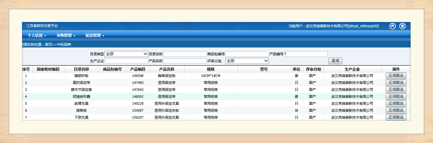 (江蘇省耗材交易平臺中標產(chǎn)品部分截圖)