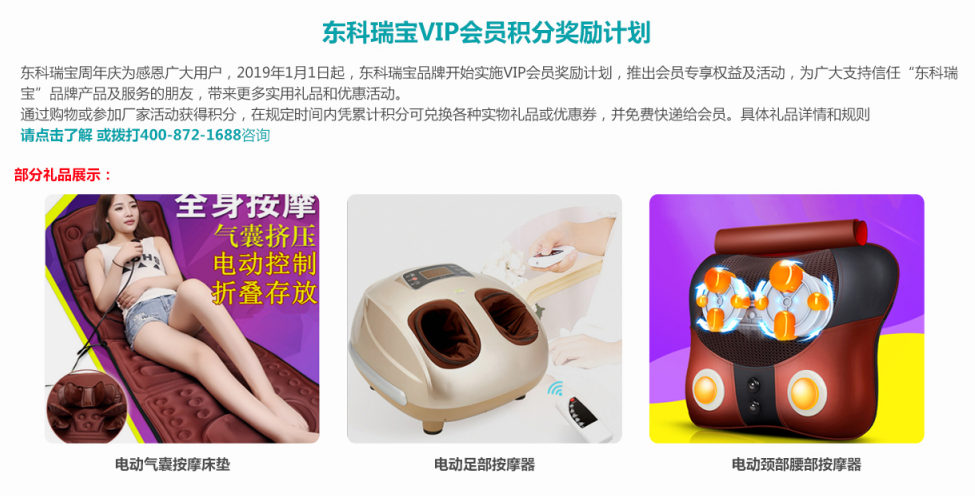 東科瑞寶企業(yè)會(huì)員積分可兌換新款多功能電動(dòng)氣囊按摩床墊,全身按摩,全家享受舒適放松,全家安康.想了解更多優(yōu)惠請(qǐng)電話咨詢我們:400-6655292 或點(diǎn)擊下方鏈接進(jìn)入詳情頁了解會(huì)員積分兌換活動(dòng)。?