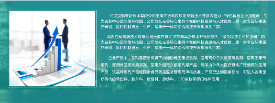 我們的產(chǎn)品全套的醫(yī)療器械資質(zhì)齊全,規(guī)格型號多,質(zhì)量合格穩(wěn)定,在全國30多個省市政府醫(yī)療機構(gòu)集中采購項目,和公立醫(yī)療機構(gòu)陽光采購項目中標,適用于胸外科、骨科、急診科、理療科、整形科、120急救等。