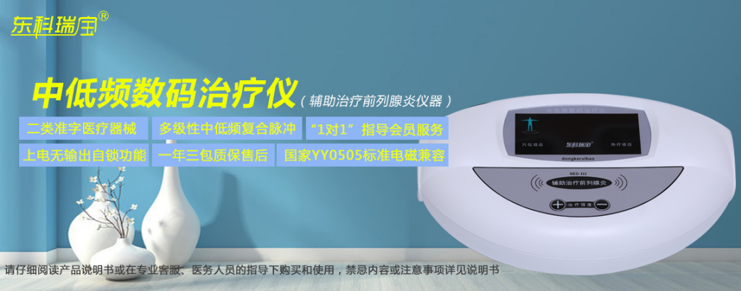 東科瑞寶牌前列腺治療儀器<家用系列/醫(yī)用系列>,為輔助治療前列腺炎等疾病癥狀的中低頻數(shù)碼治療儀,二類醫(yī)療器械產(chǎn)品,采用多級性中低頻復(fù)合脈沖電流,根據(jù)前列腺特性由專門設(shè)計的電腦程序控制,利用專用理療電極片等配件耗材輸出,并通過特定穴位經(jīng)絡(luò)釋放起到治療作用。