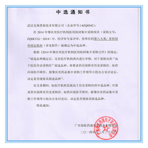 “東科圣康”牌術(shù)后B型胸骨固定板生產(chǎn)廠家為:武漢克瑞普新技術(shù)有限公司,在全國(guó)30多個(gè)地區(qū)的醫(yī)用耗材陽(yáng)光采購(gòu)項(xiàng)目中標(biāo),產(chǎn)品由高分子材料+記憶合金板=固定板及魔術(shù)多頭胸肋骨固定繃帶兩大部分組成。使用時(shí),固定夾板緊貼胸背部創(chuàng)傷部位,用于局部保護(hù)固定,魔術(shù)多頭肋骨固定繃帶則纏繞胸廓,使整個(gè)胸部成為一個(gè)整體,起到整體固定作用,這種局部固定加整體固定形成了連結(jié)穩(wěn)定的胸廓整體。