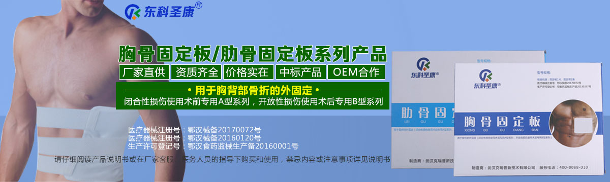 東科圣康牌胸骨固定板、肋骨固定板系列產(chǎn)品(又稱:胸部護(hù)板),密封包裝,輻照滅菌(可進(jìn)手術(shù)室),可進(jìn)入社會醫(yī)療保險(xiǎn)和新型農(nóng)村合作醫(yī)療收費(fèi),全套醫(yī)療器械耗材生產(chǎn)注冊資質(zhì)齊全,規(guī)格型號多,質(zhì)量合格穩(wěn)定,在全國30多個(gè)省市政府醫(yī)療機(jī)構(gòu)集中采購項(xiàng)目,和公立醫(yī)療機(jī)構(gòu)陽光采購項(xiàng)目中標(biāo),適用于胸外科、骨科、腫瘤科、急診科、理療科、整形科、120現(xiàn)場急救、ICU、康復(fù)科等科室。。