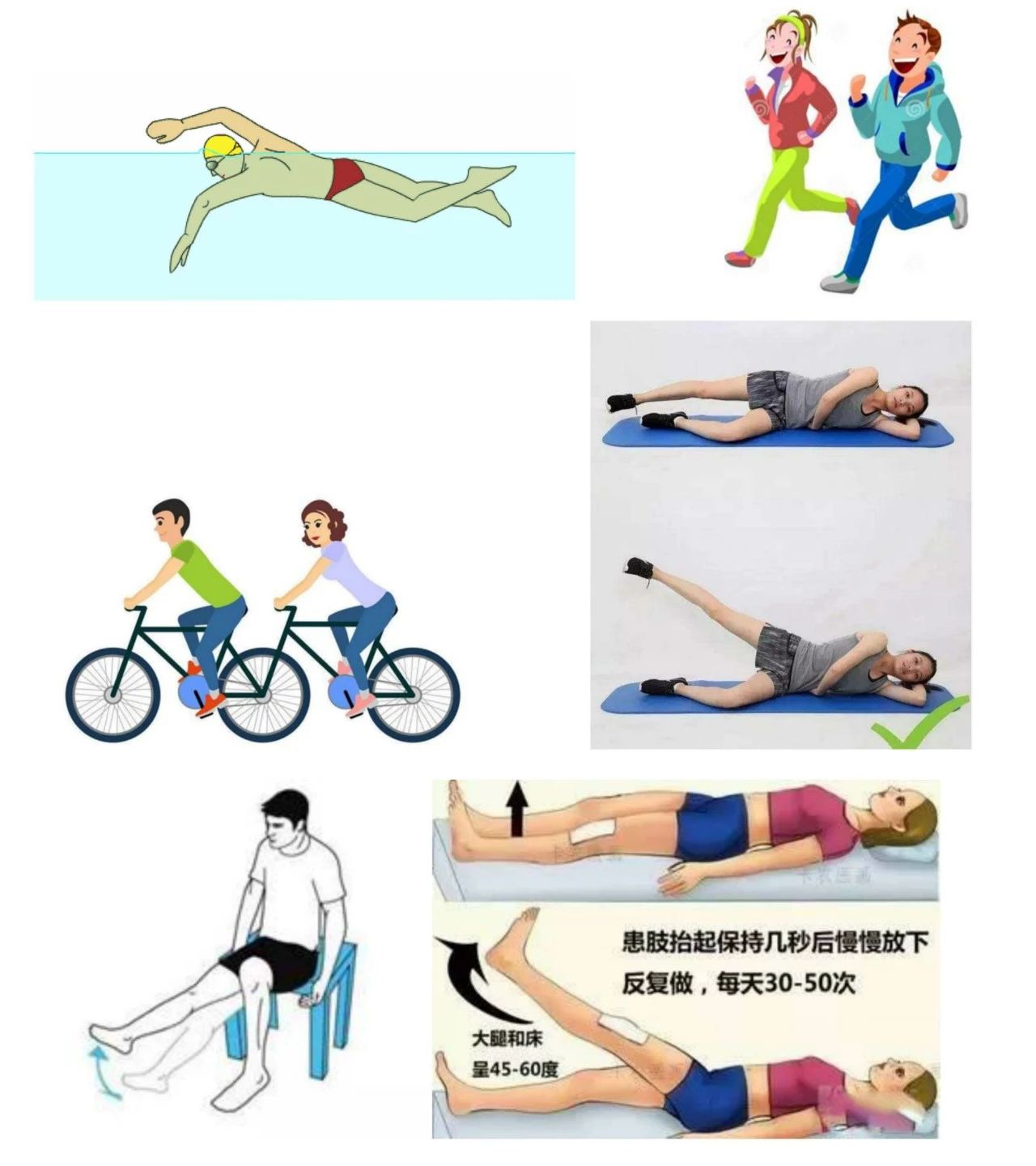 “練”:建議游泳、慢跑、散步等運(yùn)動,同時應(yīng)注重膝關(guān)節(jié)周圍肌肉的鍛煉。