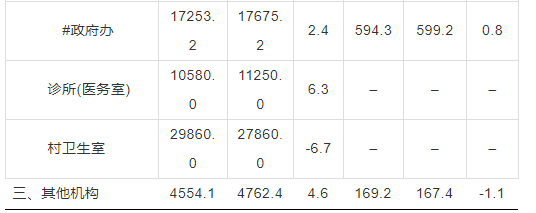 醫(yī)院3020.8萬人,同比下降1.1%,其中:公立醫(yī)院2496.7萬人,同比下降1.5%;民營醫(yī)院524.1萬人,同比提高0.4%。