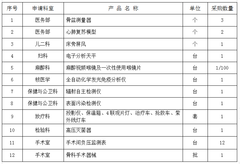 我院擬對以下醫(yī)療器械進行采購,請符合條件的供應(yīng)商報名:
