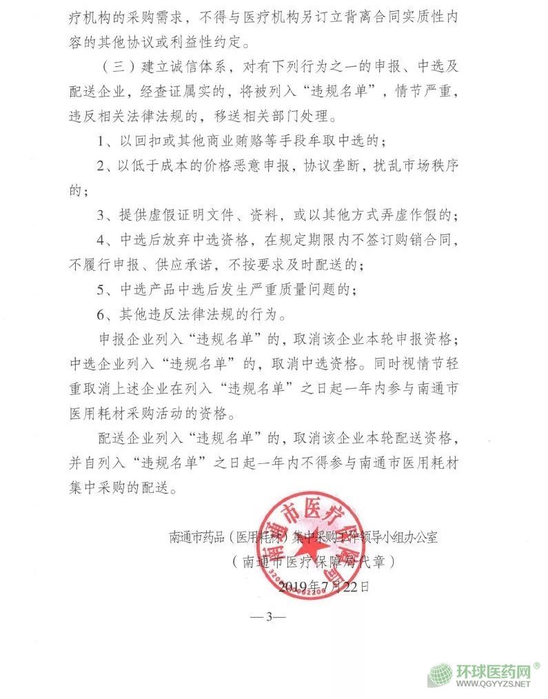 值得一提的是,在基礎談判價格申報階段,此前南通市的要求是如果過期不申報(截止到7月19日),將暫停其2017年南通市醫(yī)療衛(wèi)生機構醫(yī)用耗材和檢驗檢測試劑相關中標入圍品種在省平臺上的采購。