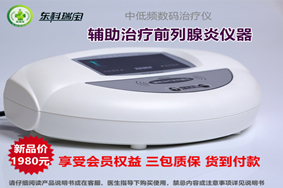 東科瑞寶牌前列腺治療儀器-中低頻數(shù)碼治療儀<家用系列/醫(yī)用系列>,為輔助治療前列腺炎等疾病專用泌尿外科男科治療儀器設(shè)備,屬于二類醫(yī)療器械產(chǎn)品,采用多級性中低頻復(fù)合脈沖電流,根據(jù)前列腺特性而專門設(shè)計(jì)的電腦程序控制,利用理療電極片等配件耗材輸出,并通過特定穴位經(jīng)絡(luò)釋放起到相關(guān)治療理療作用,操作簡單方便,廠家三包質(zhì)保,提供客服一對一指導(dǎo)服務(wù),2019年度新產(chǎn)品優(yōu)價(jià)發(fā)售,并贈送雙倍會員積分,可兌換豐富會員禮品和會員優(yōu)先服務(wù)。